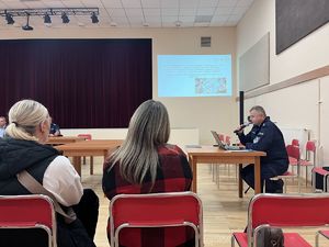 Podczas debaty funkcjonariusze zaprezentowali jak korzystać z Krajowej Mapy Zagrożeń Bezpieczeństwa i aplikacji Moja Komenda, zachęcając, aby w razie pojawiających się problemów kontaktować się z dzielnicowym, który pomoże rozwiązać codzienne trudności.