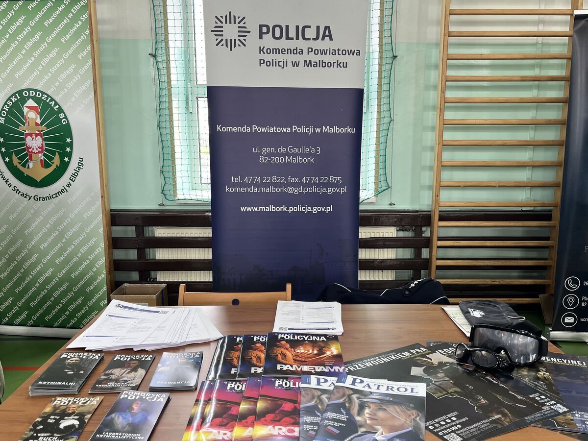 Funkcjonariusze z Komendy Powiatowej Policji w Malborku wzięli udział w kolejnych targach edukacyjnych, które były organizowane przez Urząd Pracy w Malborku. W trakcie wydarzenia, mundurowi zachęcali uczestników targów do wstąpienia w policyjne szeregi, przedstawiając ofertę służby oraz wymogi formalne dotyczące kandydatów. Zainteresowani służbą w Policji mieli okazję osobiście porozmawiać z funkcjonariuszami na temat przebiegu postępowania kwalifikacyjnego, wymaganiach oraz o szkoleniu policyjnym.