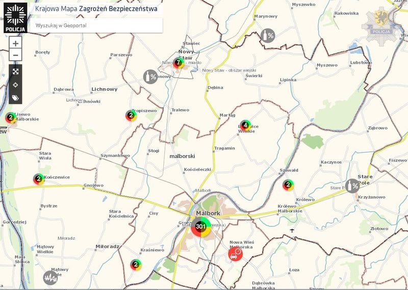 Mieszkańcy powiatu malborskiego od 1 lipca 2016 roku korzystają z internetowej mapy zagrożeń, która pozwala nas bezpośredni dostęp do informacji na temat stanu bezpieczeństwa w miejscu zamieszkania oraz umożliwia wskazywanie lokalnych zagrożeń. Mieszkańcy powiatu malborskiego aktywnie włączyli się w realizację tego przedsięwzięcia nanosząc na mapę zagrożeń 327 miejsc w których dochodzi do niepożądanych zachowań. Każde zgłoszenie jest dokładnie weryfikowane przez funkcjonariuszy poszczególnych wydziałów. Dzięki otrzymanym sygnałom policyjne patrole objęły stałym nadzorem miejsca w których dochodzi do wykroczeń.