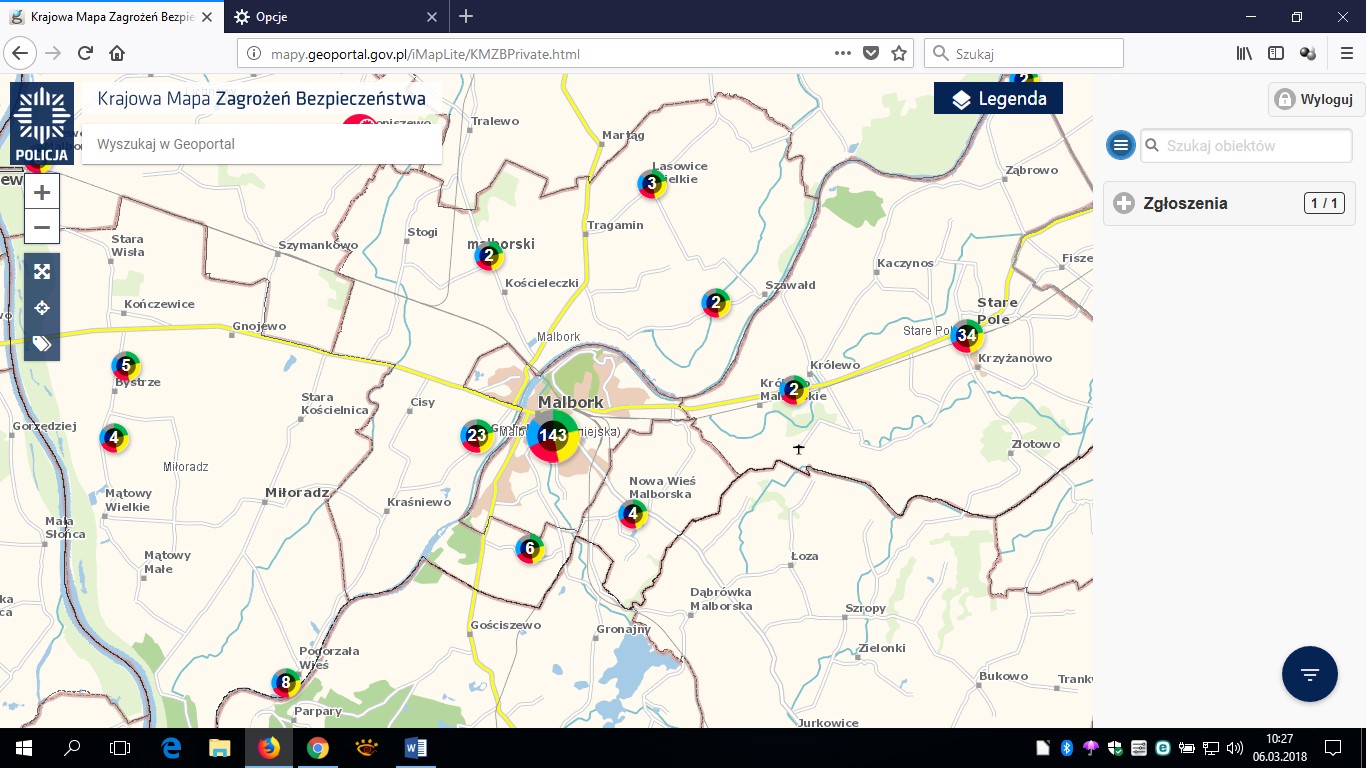 Mieszkańcy powiatu malborskiego od 1 lipca 2016 roku korzystają z internetowej mapy zagrożeń, która pozwala nas bezpośredni dostęp do informacji na temat stanu bezpieczeństwa w miejscu zamieszkania oraz umożliwia wskazywanie lokalnych zagrożeń. Mieszkańcy powiatu malborskiego aktywnie włączyli się w realizację tego przedsięwzięcia zaznaczając na mapie 857 miejsc, w których dochodzi do niepożądanych zachowań. Każde zgłoszenie jest dokładnie weryfikowane przez funkcjonariuszy poszczególnych wydziałów. Policjanci potwierdzili do tej pory 248 zgłoszeń. Dzięki otrzymanym sygnałom policyjne patrole objęły stałym nadzorem miejsca w których dochodzi do wykroczeń.