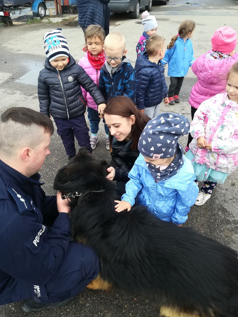 Wczoraj policjantów malborskiej komendy odwiedziły dzieci z Przedszkola im. Rodziny Sierakowskich w Waplewie. Najmłodsi z bliska mogli zobaczyć jak wygląda praca funkcjonariuszy i pracowników cywilnych na komendzie. Maluchy miały możliwość zwiedzania jednostki oraz mogły przypatrzeć się pracy funkcjonariuszy różnych komórek. Najwięcej emocji wśród uczestników wzbudziło spotkanie z psem służbowym i jego przewodnikiem. Podczas zapoznawania dzieci z rodzajami technik kryminalistycznych każde dziecko otrzymało na pamiątkę odcisk własnej dłoni. Maluchy obejrzały również pomieszczenia dla osób zatrzymanych i policyjne radiowozy. Na zakończenie spotkania policjantka rozmawiała z dziećmi na temat bezpieczeństwa w ruchu drogowym i rozdała im opaski odblaskowe.