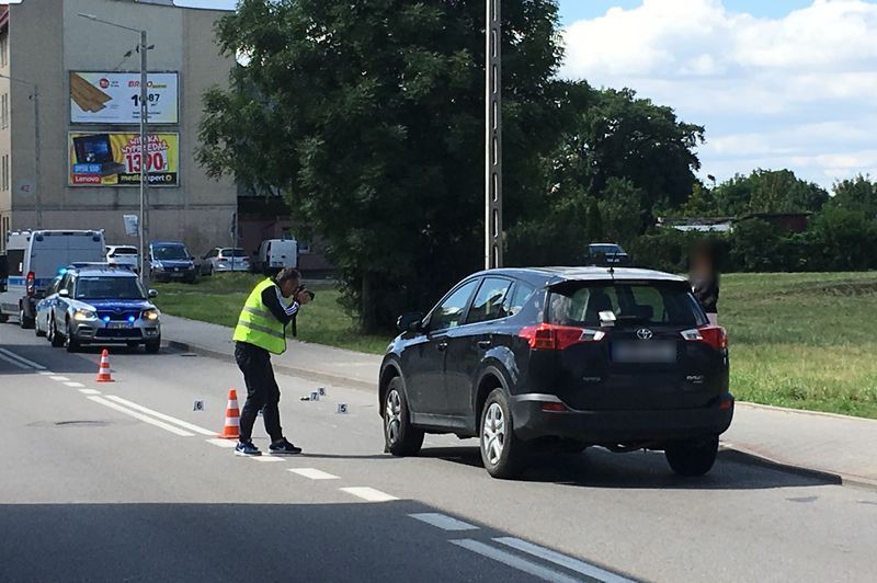 Wczoraj około godziny 10.30 policjanci otrzymali zgłoszenie o wypadku drogowym, do którego doszło na ul. Aleja Armii Krajowej w Malborku. Z informacji uzyskanej od zgłaszającego wynikało, że miało dojść do potrącenia pieszego. Funkcjonariusze, którzy przyjechali na miejsce natychmiast zabezpieczyli miejsce zdarzenia i wstępnie ustalili jego przebieg. Prawdopodobnie 44-letni mężczyzna chciał przejść przez jezdnię w miejscu niedozwolonym i wtargnął prosto pod nadjeżdżającą toyotę. Mundurowi wykonali badanie stanu trzeźwości 54-leniego kierowcy i pieszego, które wykazało, że kierujący był trzeźwy, natomiast 44-latek miał prawie 3 promile alkoholu w wydychanym powietrzu. Pracujący na miejscu funkcjonariusze sporządzili oględziny, dokumentację fotograficzną, przesłuchali świadków oraz wykonali szkic. Policjanci zabezpieczyli pojazd do dalszych badań. Uczestniczący w wypadku pieszy z obrażeniami ciała został przewieziony do szpitala. Funkcjonariusze przez 2 godziny kierowali ruchem, który w miejscu wypadku odbywał się wahadłowo.