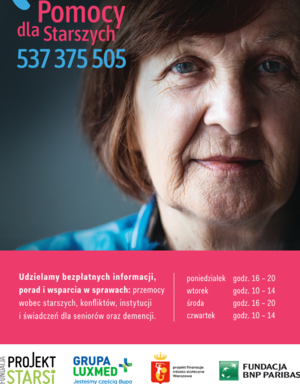 Bezpłatne informacje, porady i wsparcie w sprawach: przemocy wobec starszych, konfliktów, instytucji i świadczeń dla seniorów oraz demencji.