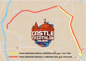 Dodano: 31.08.2025 Uwaga! W dniach 6-7 września br. z powodu organizowanych zawodów pn. Castle Triathlon Malbork wystąpią utrudnienia w ruchu drogowym. -